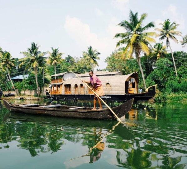 Begin your journey by immersing yourself in the serene beauty of Kerala’s backwaters. Cruise along the intricate network of canals, rivers, and lagoons aboard a traditional houseboat known as a ‘kettuvallam’. As you glide through the calm waters, surrounded by swaying palms and quaint villages, you’ll witness the simple yet captivating way of life along the waterways.